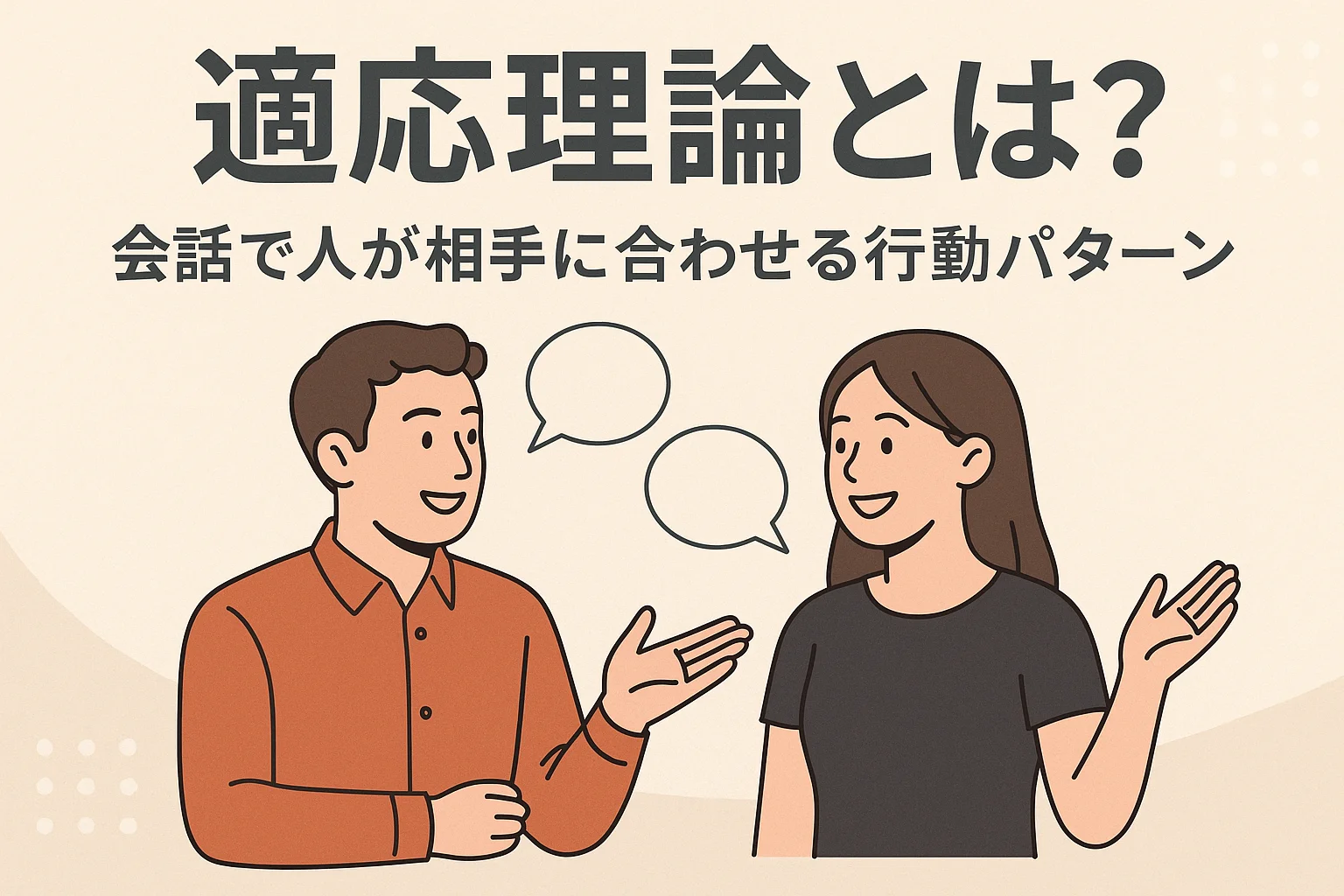 適応理論は、1970年代にハワード・ジャイルズが提唱した「人は会話の中で相手に合わせる(あるいは距離を取る)ことで関係を調整する」という考え方です。理論といっても難しい公式が出てくるわけではなく、現場での感覚を言語化したもの。これを理解しておくと、相手に飲み込まれず、かつ信頼を得る会話が組み立てやすくなります。