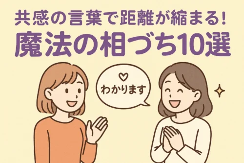 頷くだけでは「本当に聞いてる?」と不安にさせてしまいます。私は「へえ」「なるほど」「それは困りましたね」など、相槌のバリエーションを10個暗記しておき、相手のテンポに合わせて使い分けています。加えて、相手の言葉を5文字でもオウム返しすると、「伝わってる」と安心してくれます。話しやすい人は、反応の引き出しが多いんです。