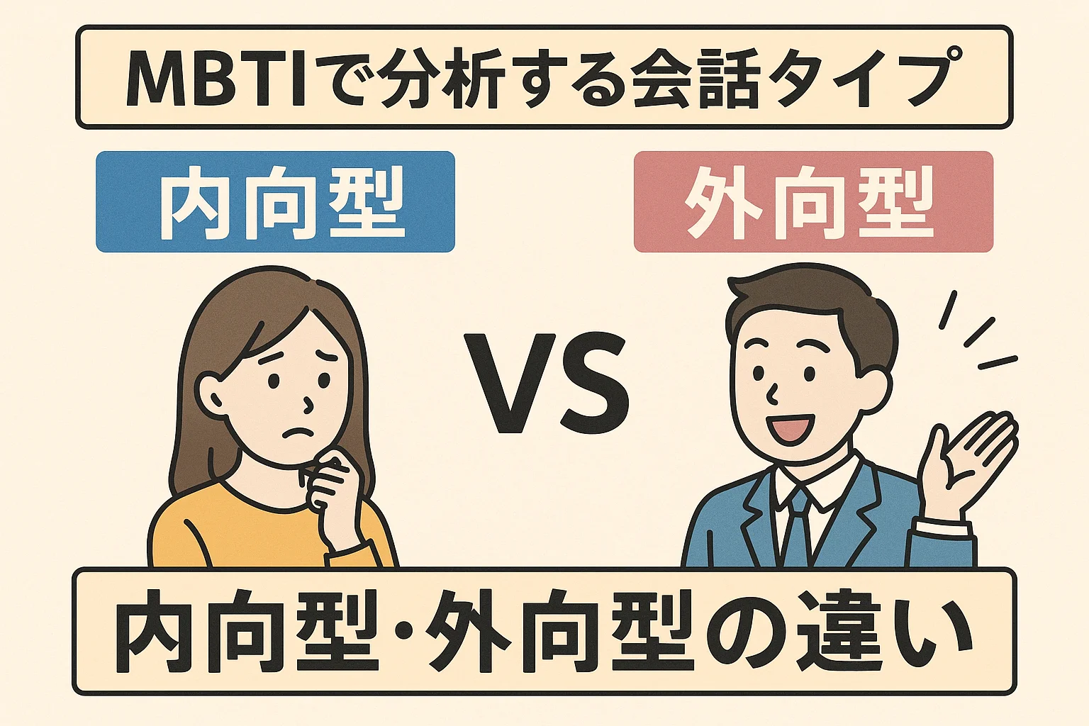 でもMBTIのレンズを通して会話タイプを理解すると、「あの人は悪気があって塩対応してるんじゃなくて、単に内向型で情報をじっくり整理したいだけなんだ」って腑に落ちる瞬間が増えます。この記事では、現場のエピソードとともに、内向型・外向型の違いをどうコミュニケーションに活かすかを徹底的に解説します。