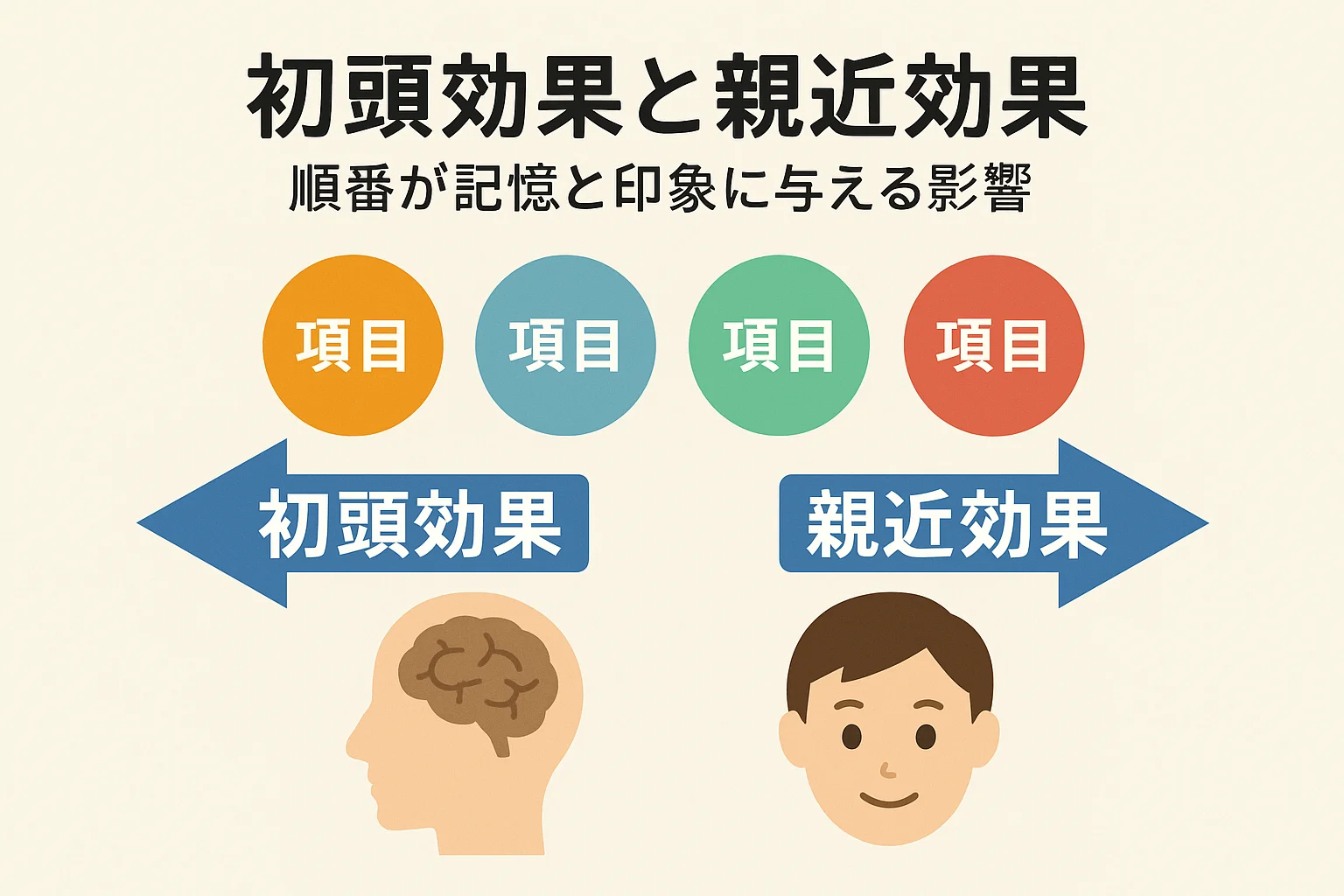 初頭効果は、最初の情報が印象を大きく左右する現象です。親近効果は、最後の情報が強く記憶に残る現象。この2つは互いに引っ張り合いながら、人の記憶と印象を支配します。接客の現場で感じるのは、「最初に何を伝えるか」と「最後にどう締めるか」が、とても大きな意味を持つということ。順番を意識しないと、せっかくの想いが相手の頭に残らず、信頼構築のチャンスを逃してしまいます。