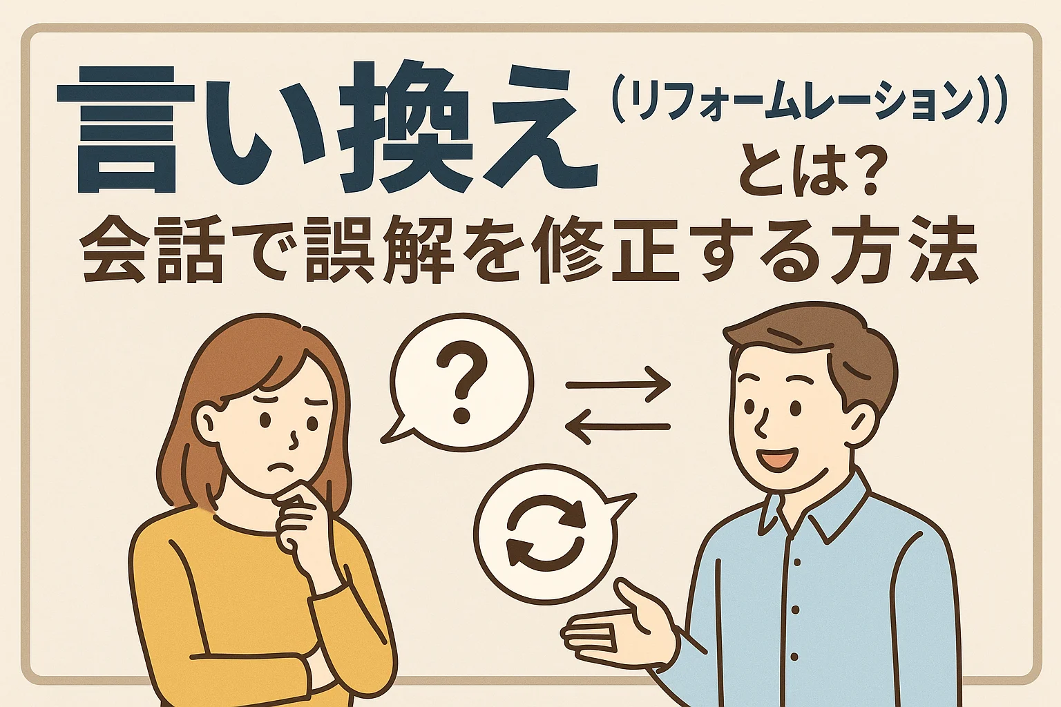 言い換え(リフォームレーション)は、誤解が生まれた瞬間に開ける救急箱のようなもの。相手の言葉を丁寧に受け止め、核心を拾い直し、再構成して確認する――この一連の流れが身につけば、どんな場面でも信頼を回復できます。忙しいときほど雑に済ませたくなりますが、そこで踏ん張るかどうかが、長期的な関係性を決めます。